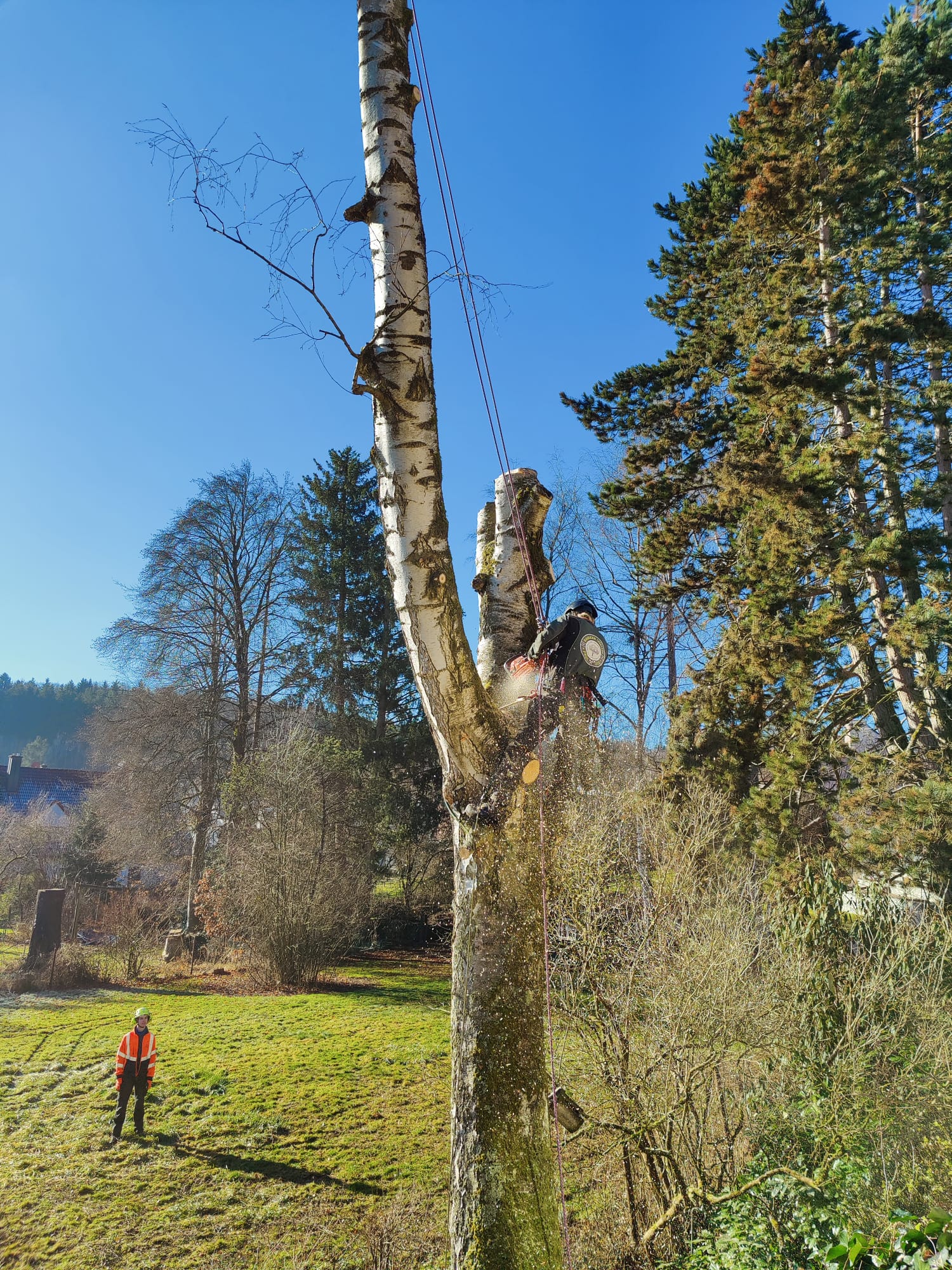 Problembaumfällung auf engem Raum, Baumabtragung mit Seilklettertechnik, Spezialfällungen bei schwierigen Standorten